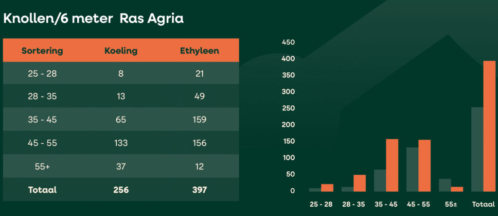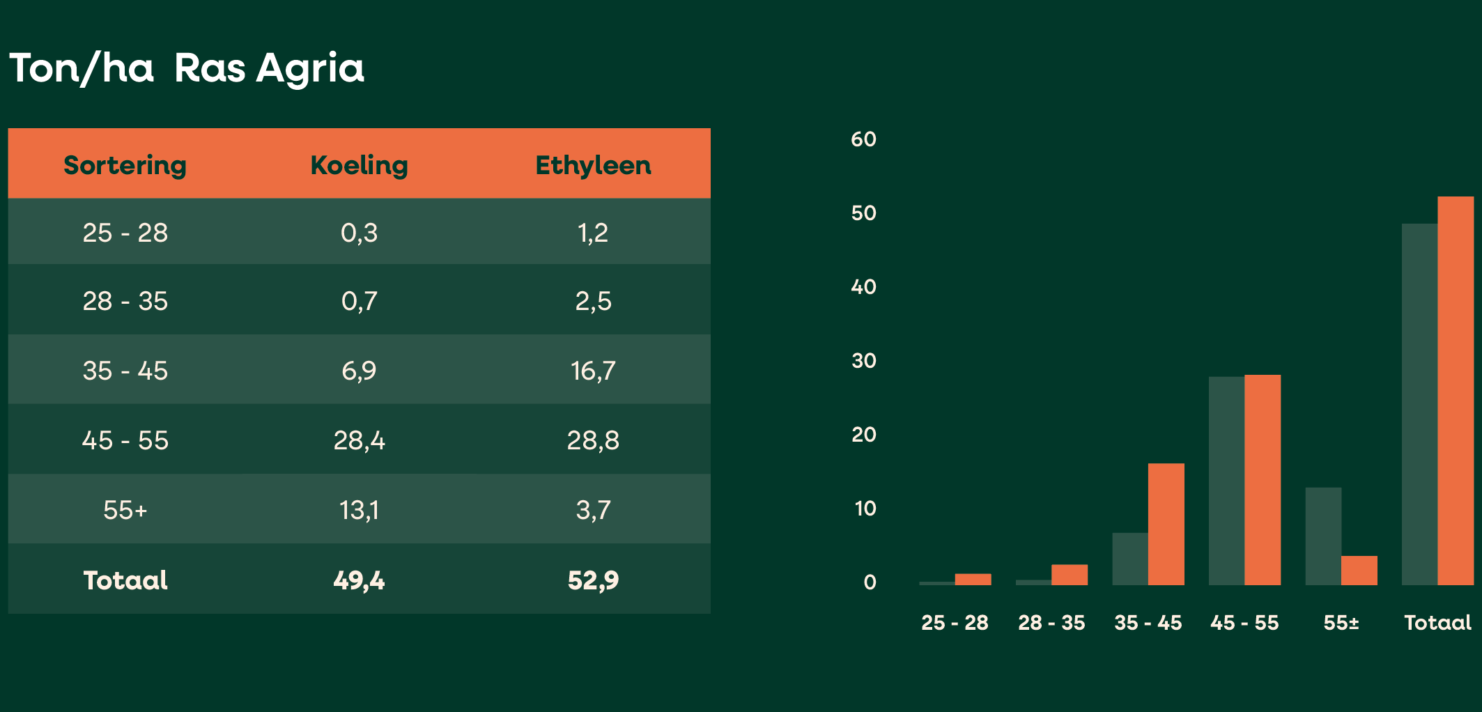 Ethyleen remt topspruitdominantie en stimuleert gelijkmatige, intensieve kiemvorming. Dat levert meer knollen per plant, betere maatsortering en een hogere opbrengst op.